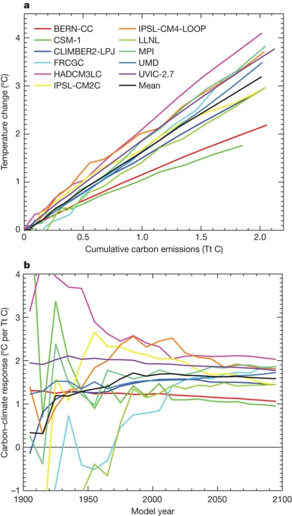 Matthews, H., et al. The proportionality of global warming to cumulative carbon emissions. Nature 459, 829–832 (2009). https://doi.org/10.1038/nature08047